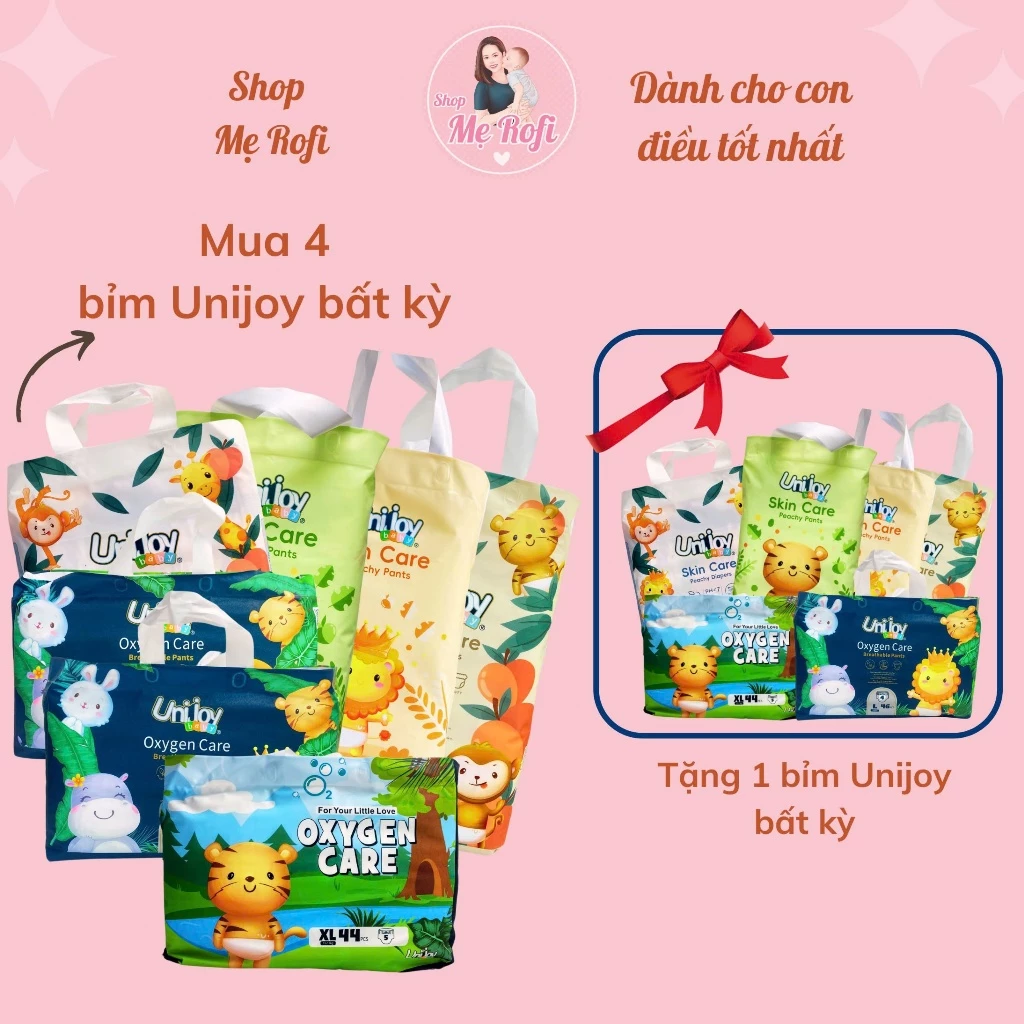 (𝐃𝐞𝐚𝐥 𝐦𝐮𝐚 4 bịch ) Unijoy Bỉm quần, tã dán Unijoy Oxygen Care đêm và Unijoy Skin Care ngày cho bé – Mẹ Rofi